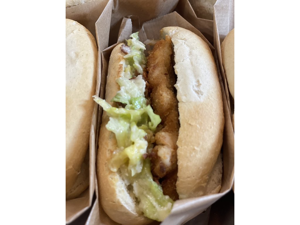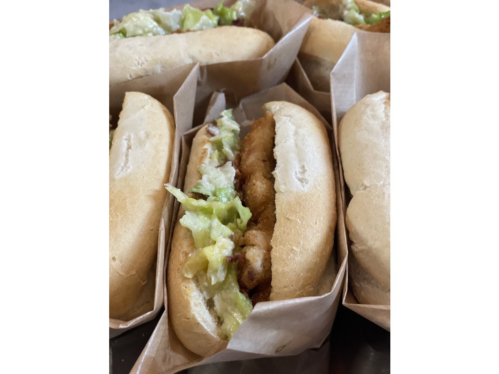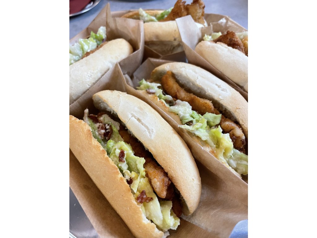 Křupavá bageta plněná šťavnatými kuřecími stripsy v zlatavé krustě, čerstvým Caesar salátem, parmazánem a jemný dresinkem. Pořádná porce, která zasytí, ale nezabije tě – ideální sváča, když chceš něco poctivého a zároveň lehčího.