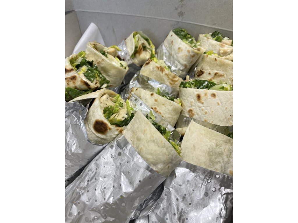 Pšeničná tortilla plněná šťavnatým kuřecím masem, křupavým římským salátem little gem, hoblinkami parmazánu a poctivým Caesar dresinkem. Vše zabalené tak, aby to drželo pohromadě a chutnalo od prvního do posledního sousta.